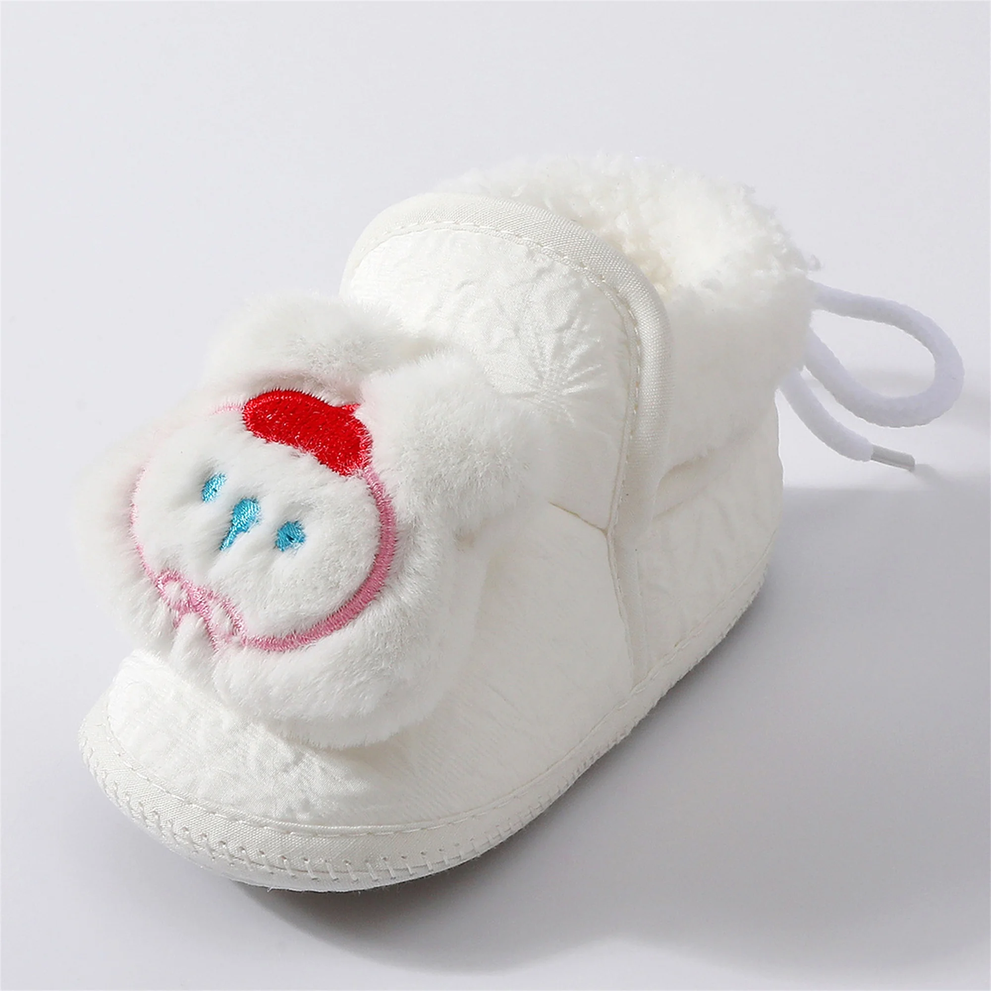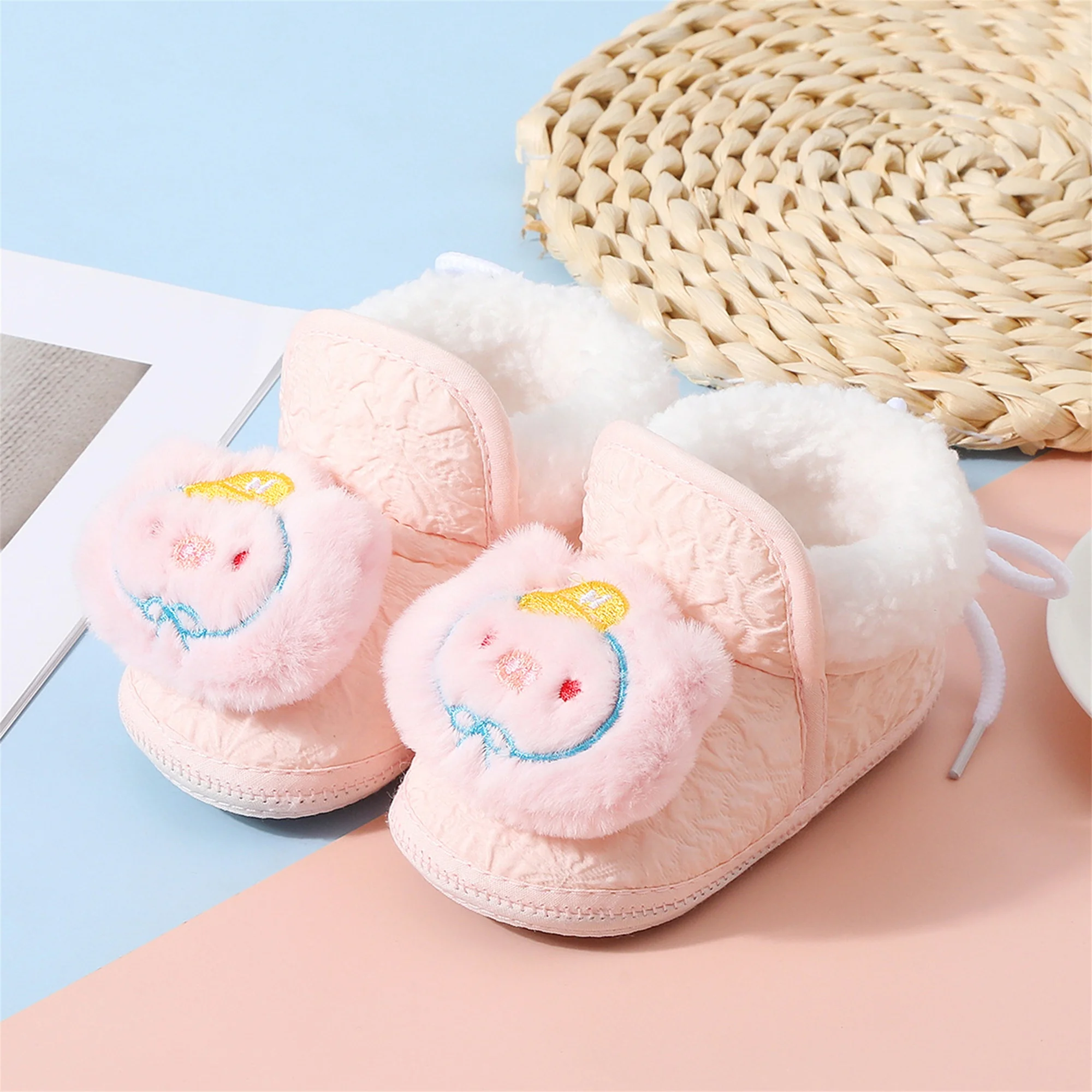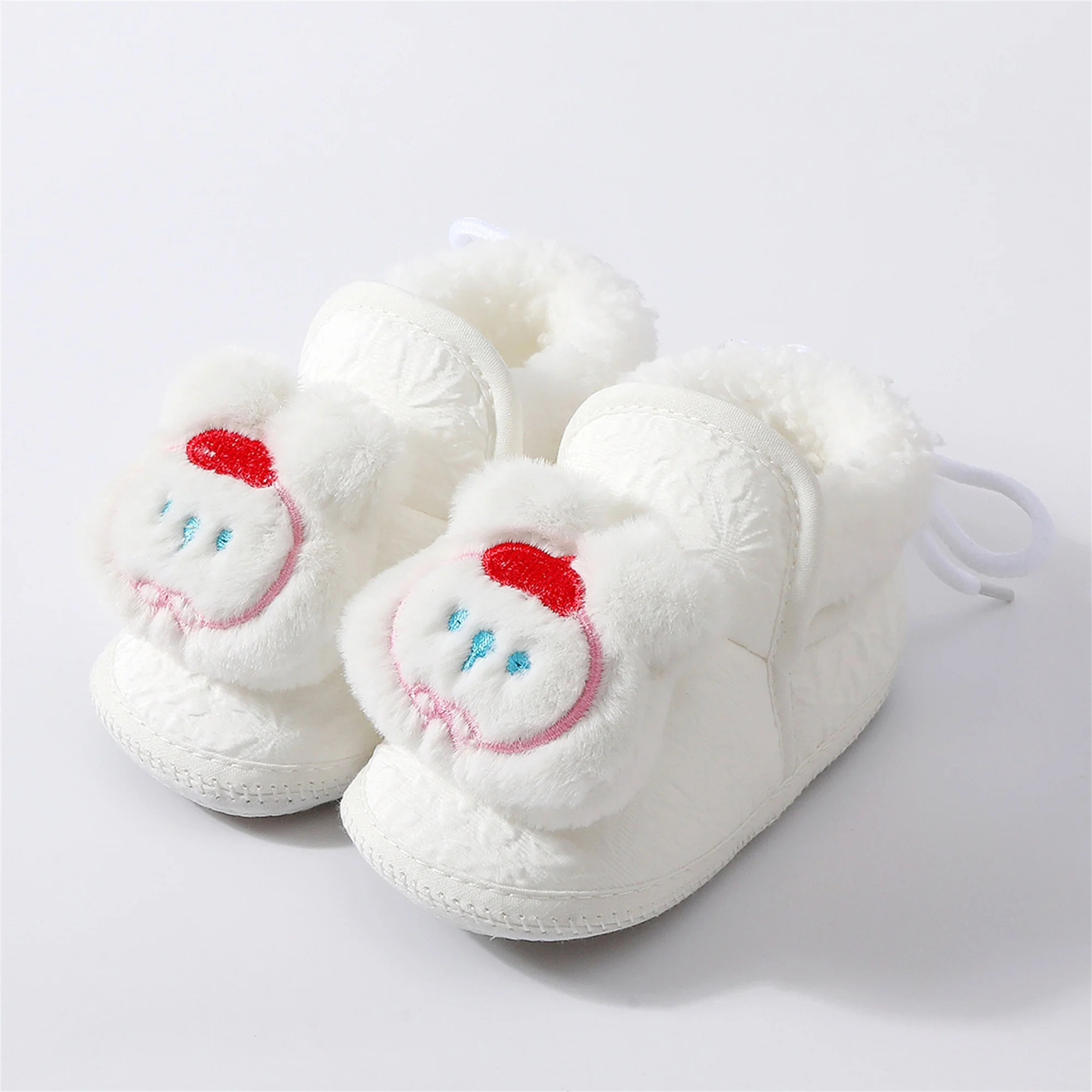 Baby Winter Shoes Plush Lining Stylish Cartoon Animal Soft Sole Non Slip Infant Slippers