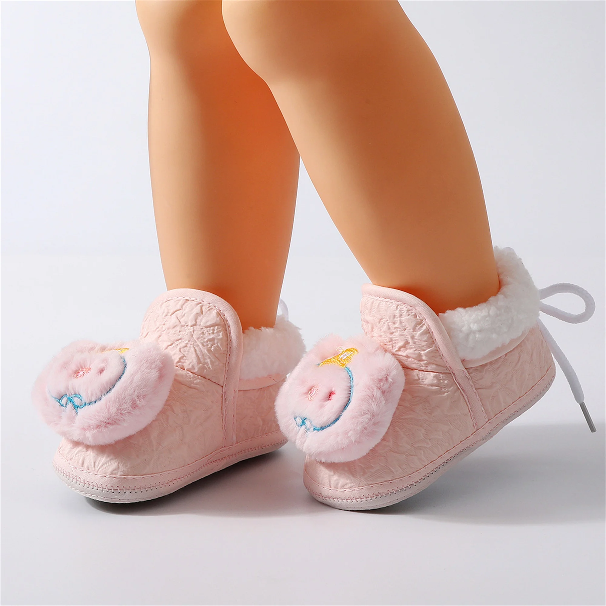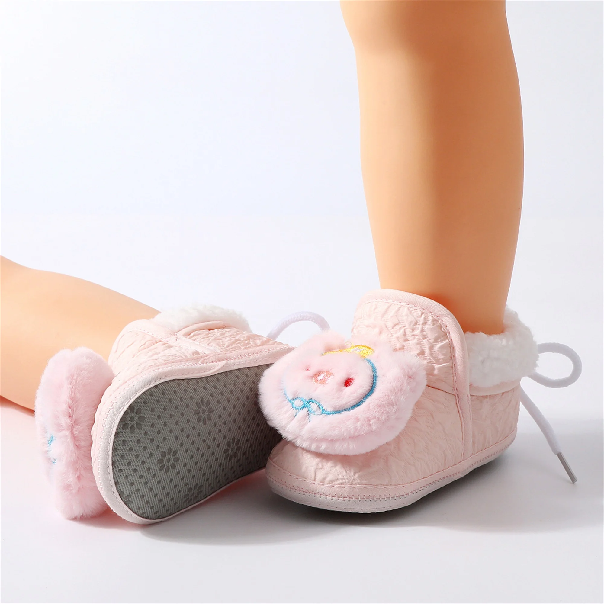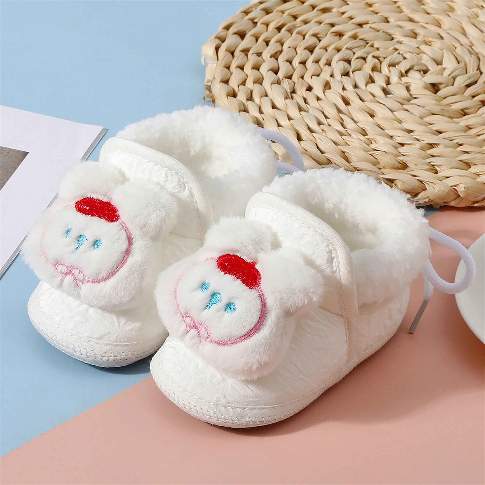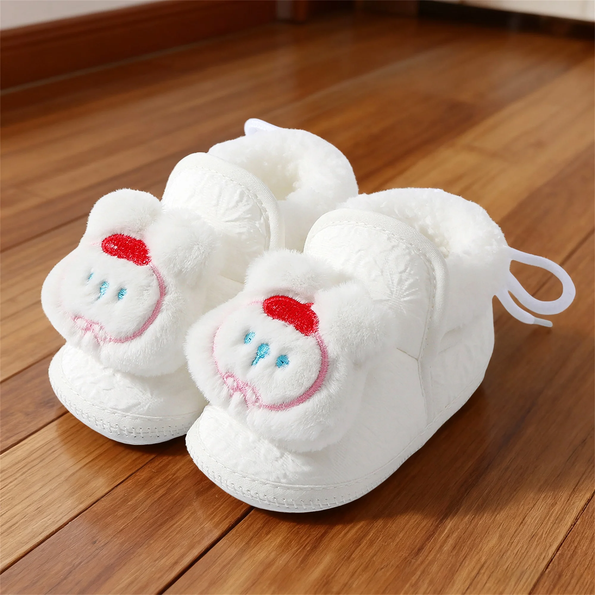 Baby Winter Shoes Plush Lining Stylish Cartoon Animal Soft Sole Non Slip Infant Slippers