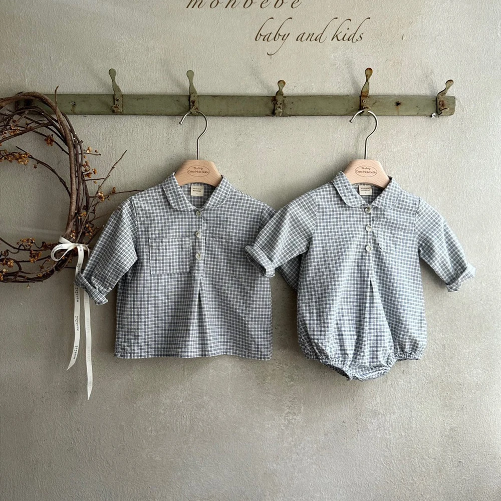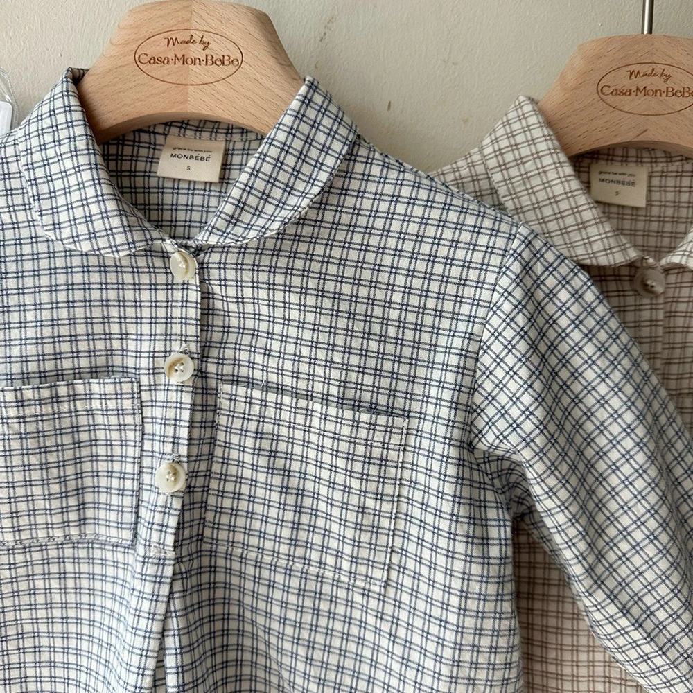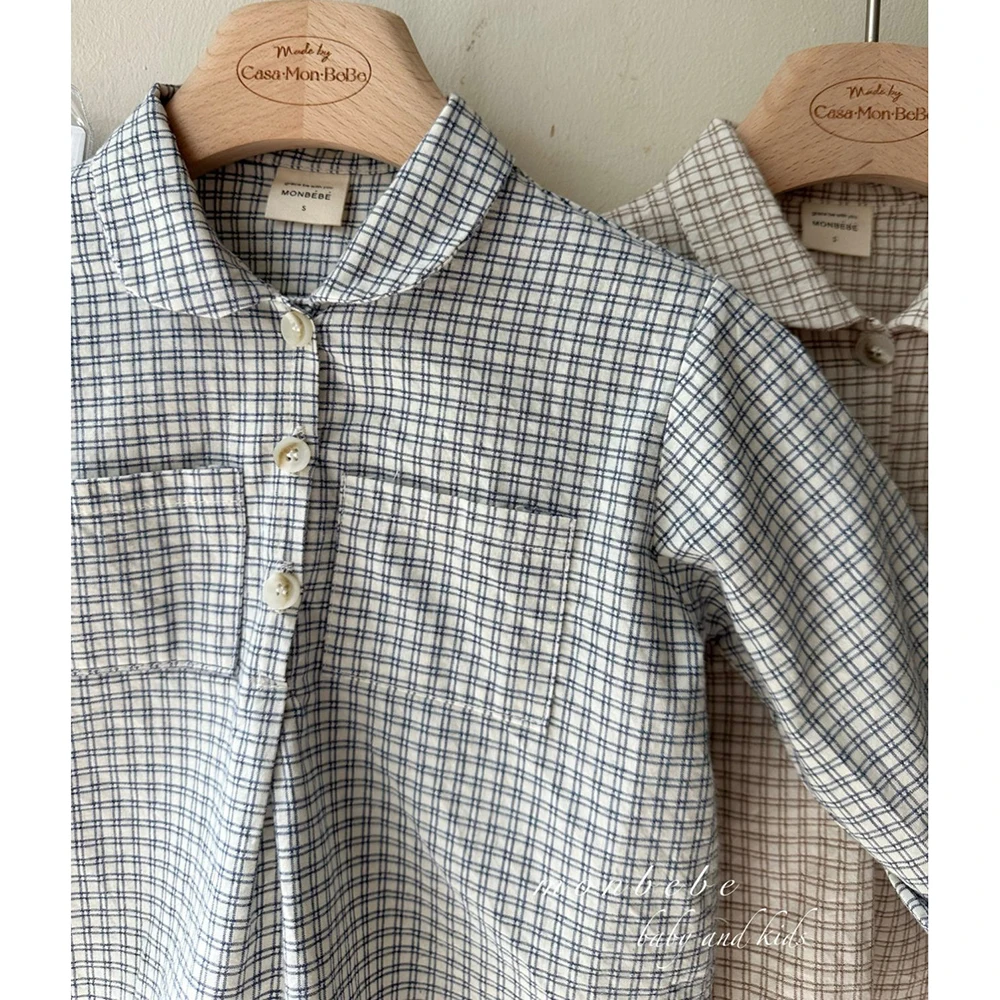 2025 spring new children shirt korean japan version kids full sleeve plaid blouse soft breathable baby outwear tops 1-6t